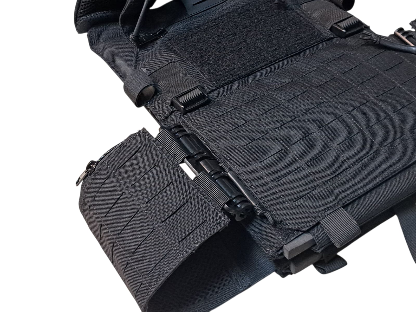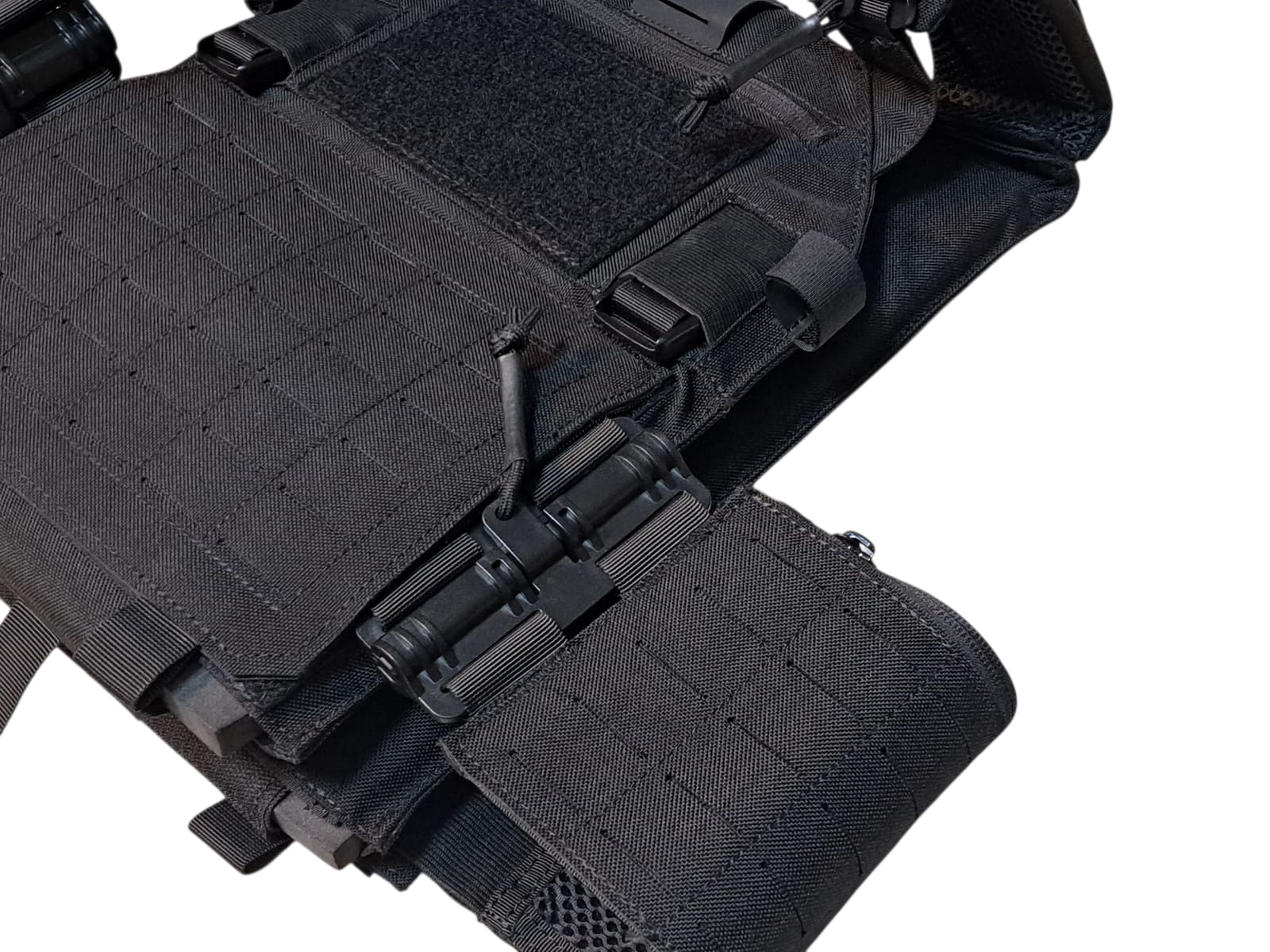 Removable front flap can be replaced with a placard or buckle chest rig of your choice