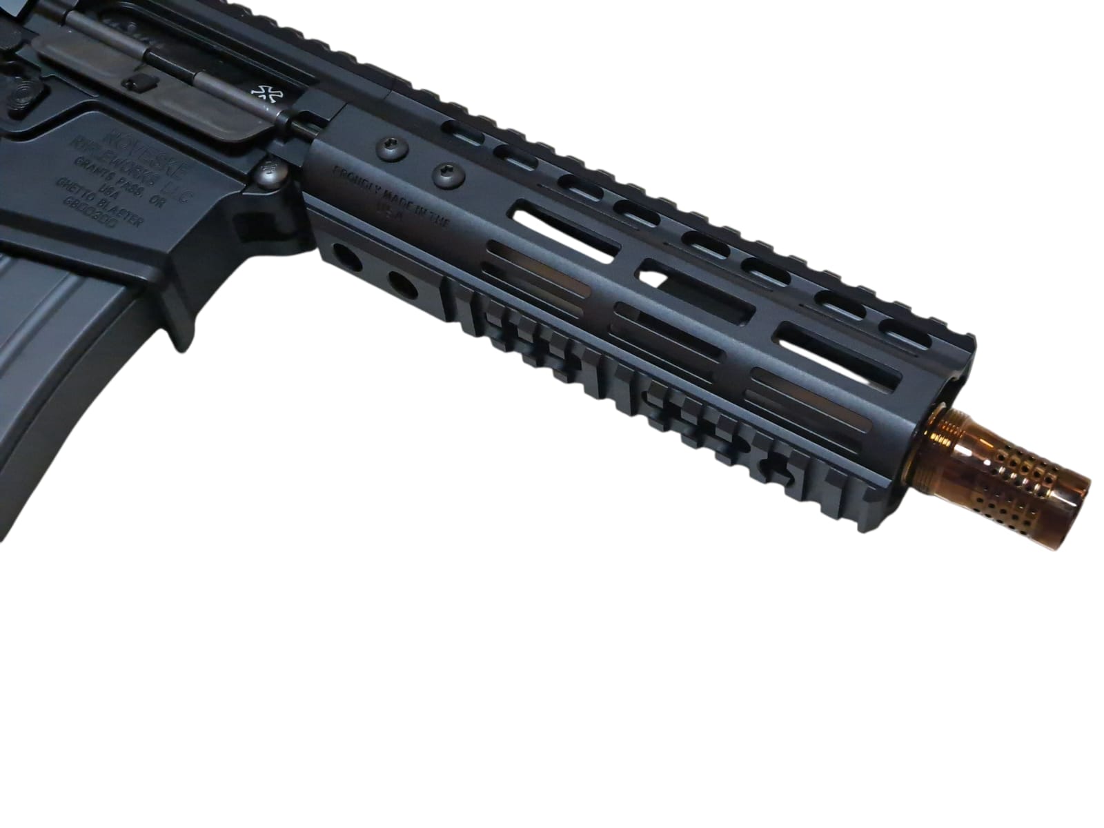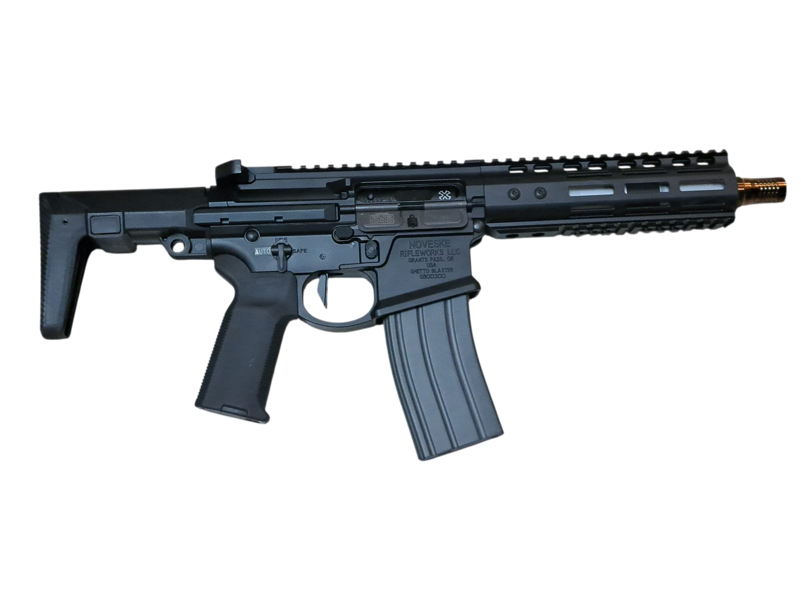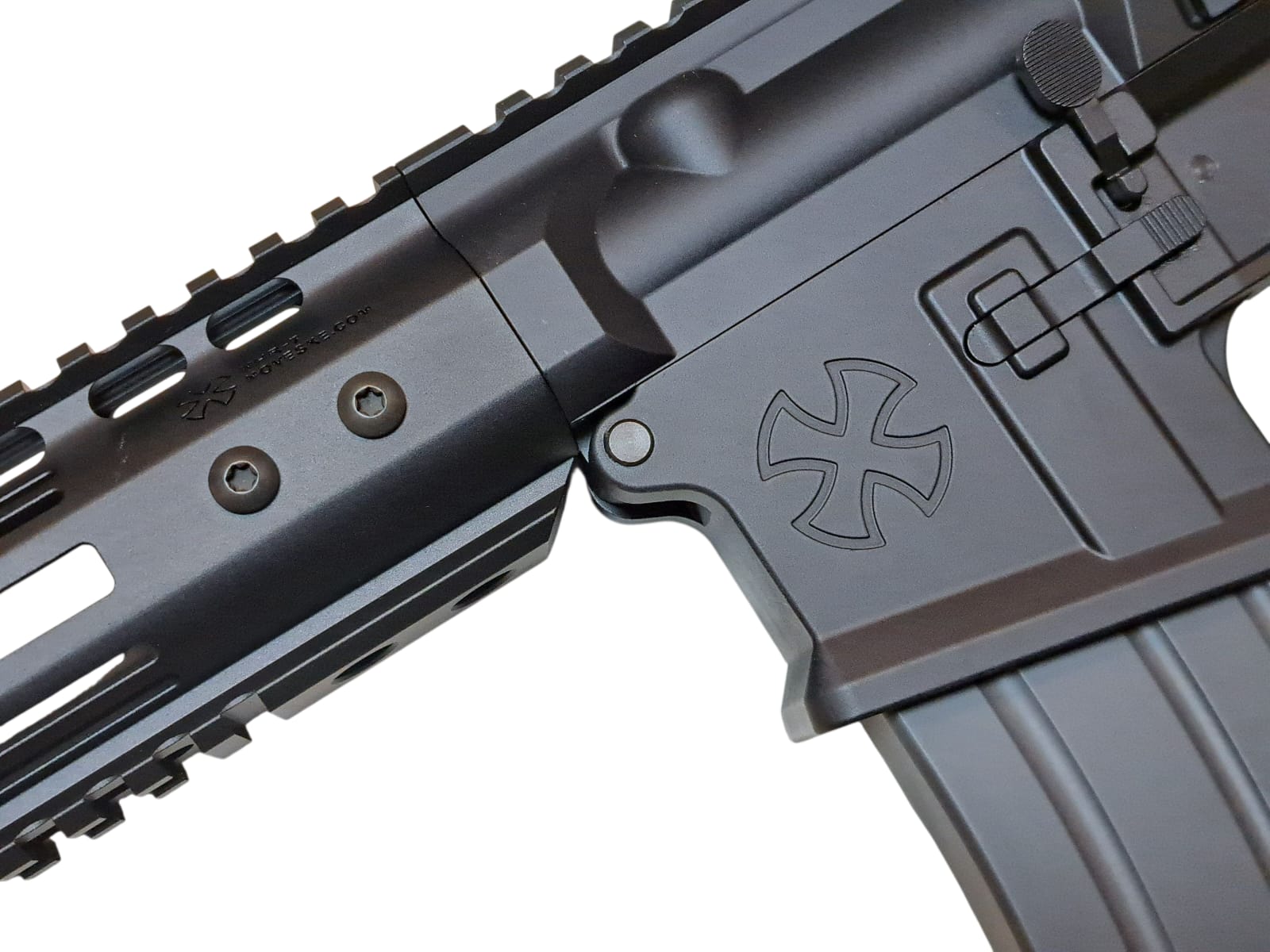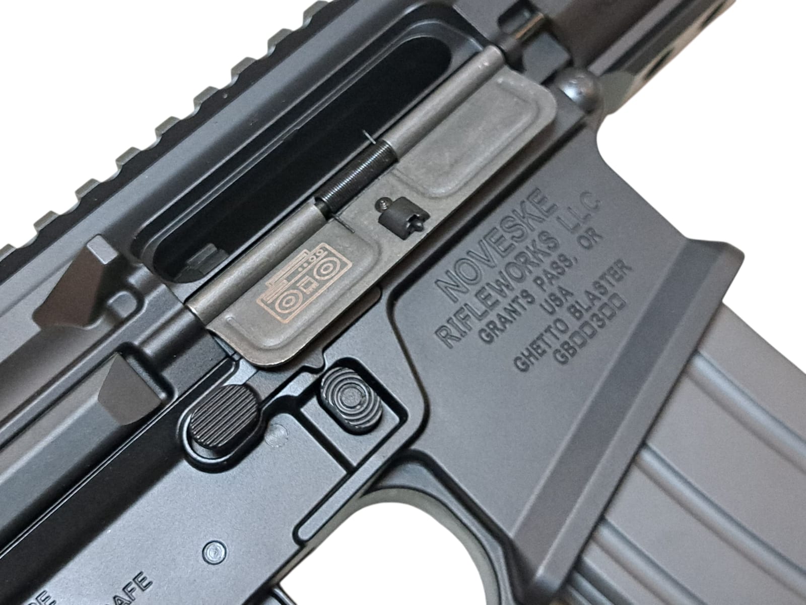 Aluminum upper and lower receivers with engraved "NOVESKE" markings.