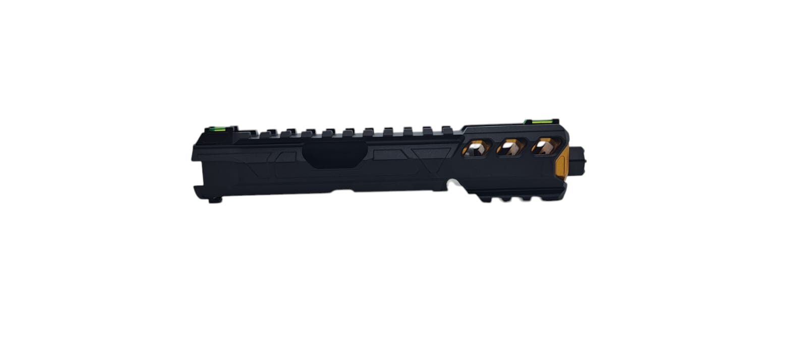 System: CNC aluminum upper receiver in black finish, paired with gold barrel, Fuku-2 design optimized for durability, lightweight recoil performance, enhanced precision, and tactical aesthetics