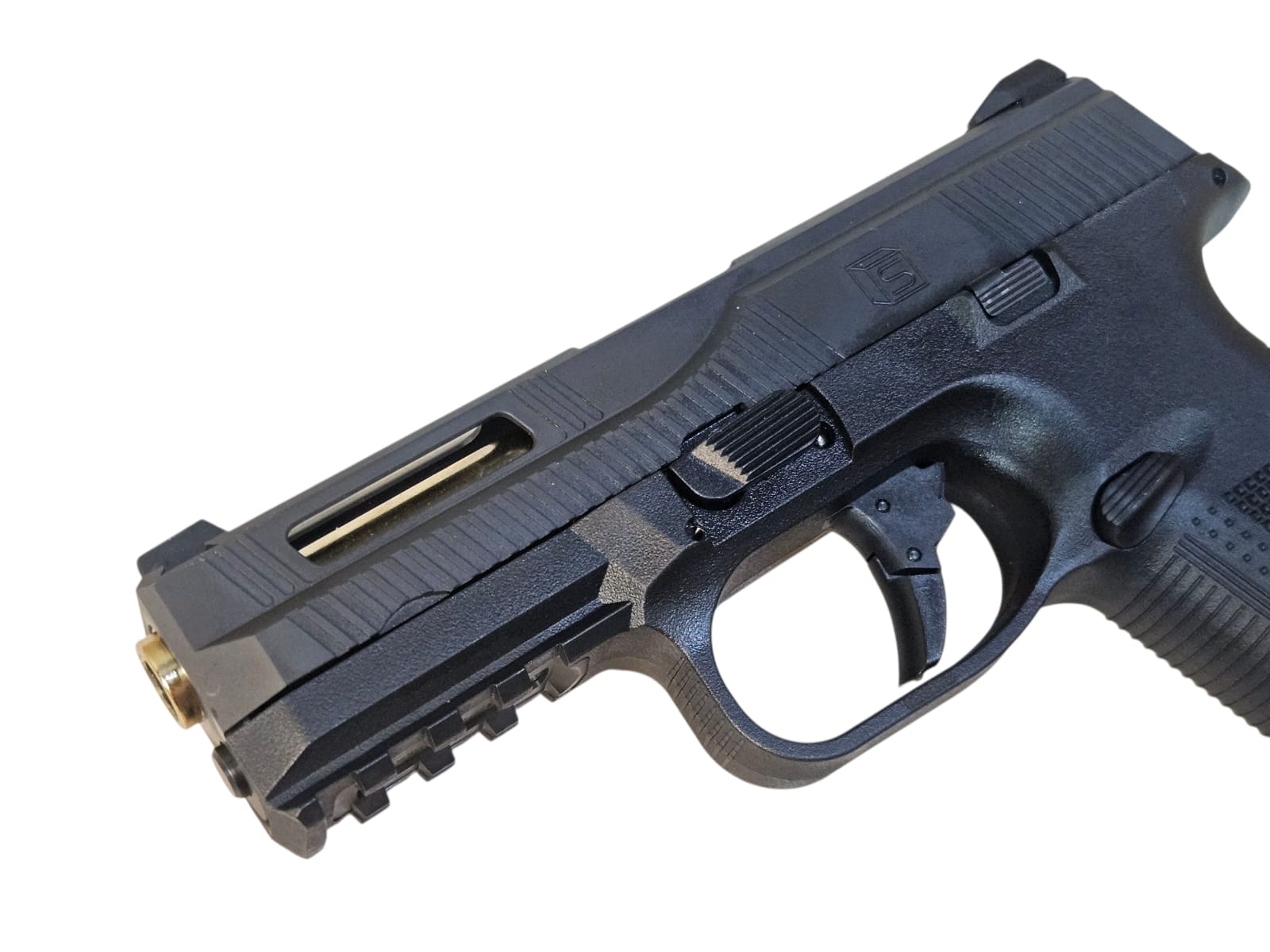 - Steel slide for realistic weight and durability