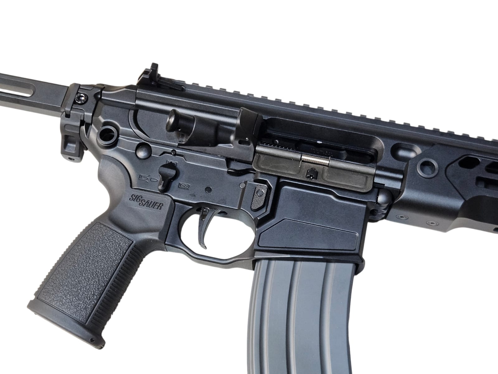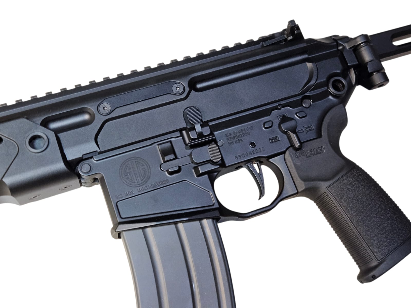 Material: CNC Aluminum Receiver / Steel Internals / Stainless Steel Bolt / Reinforced Polymer Furniture / Rubberized Grip