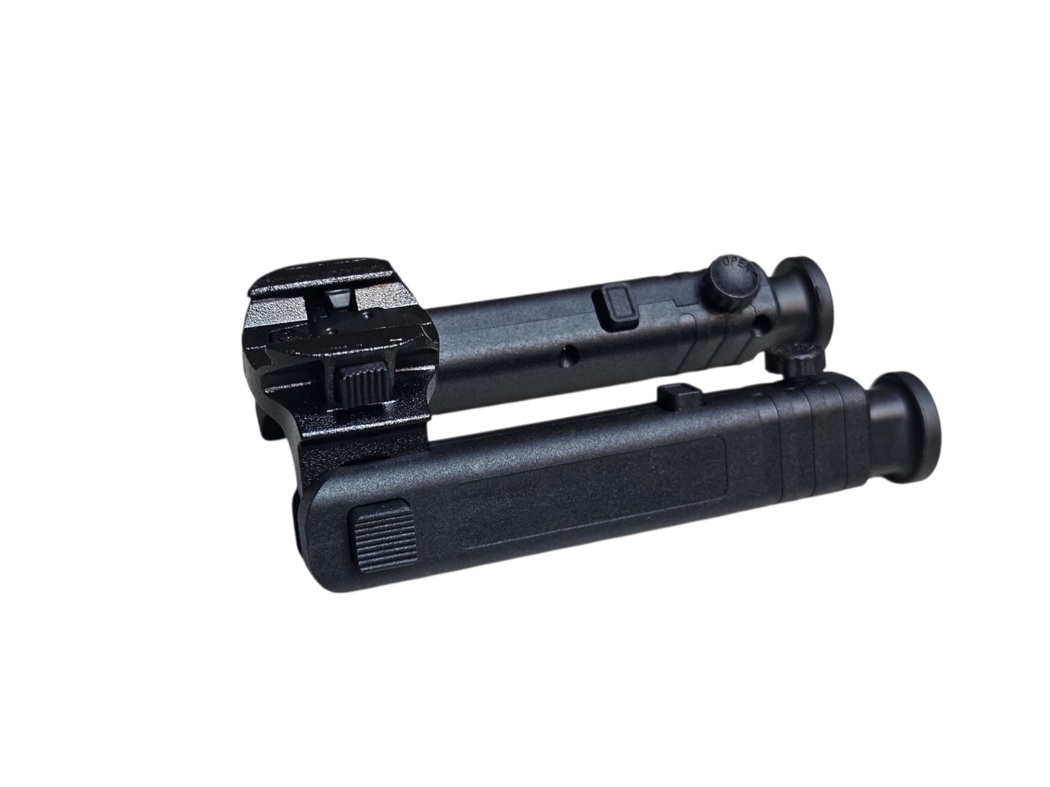 shooting. Constructed from reinforced nylon fiber for lightweight durability, with metal mounting hardware for secure attachment. Features adjustable and foldable legs, allowing shooters to adapt to different terrains and firing positions. Ideal for airsoft snipers and tactical players seeking enhanced accuracy and support during long‑range engagements.