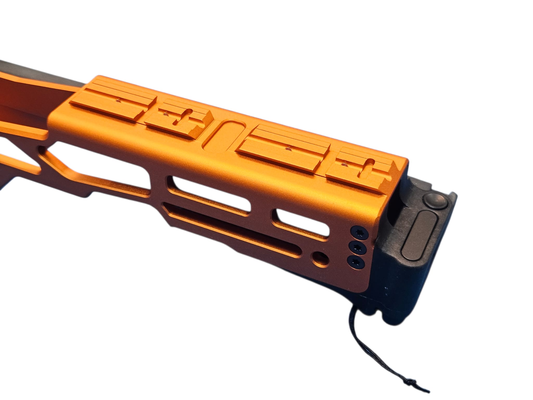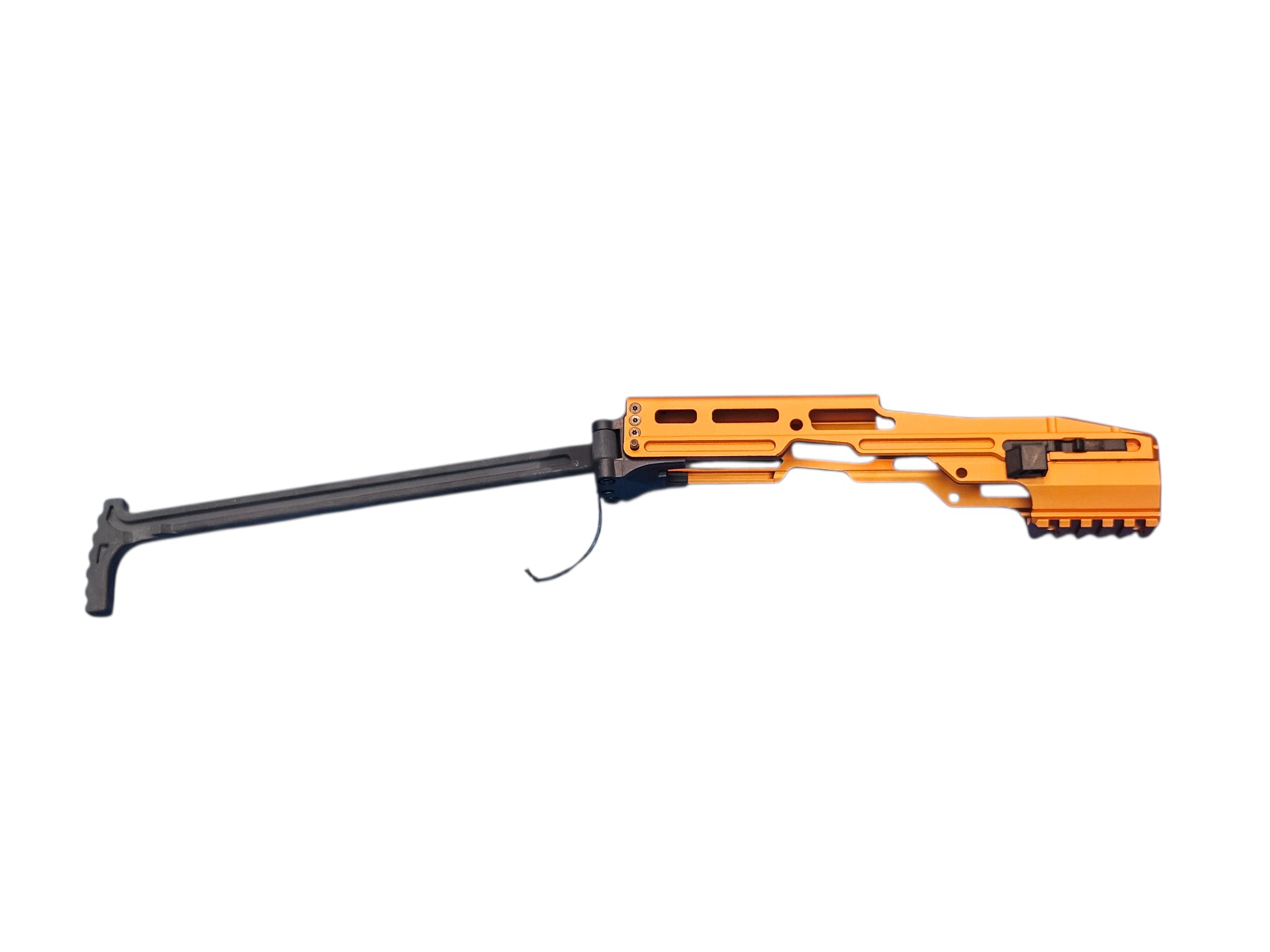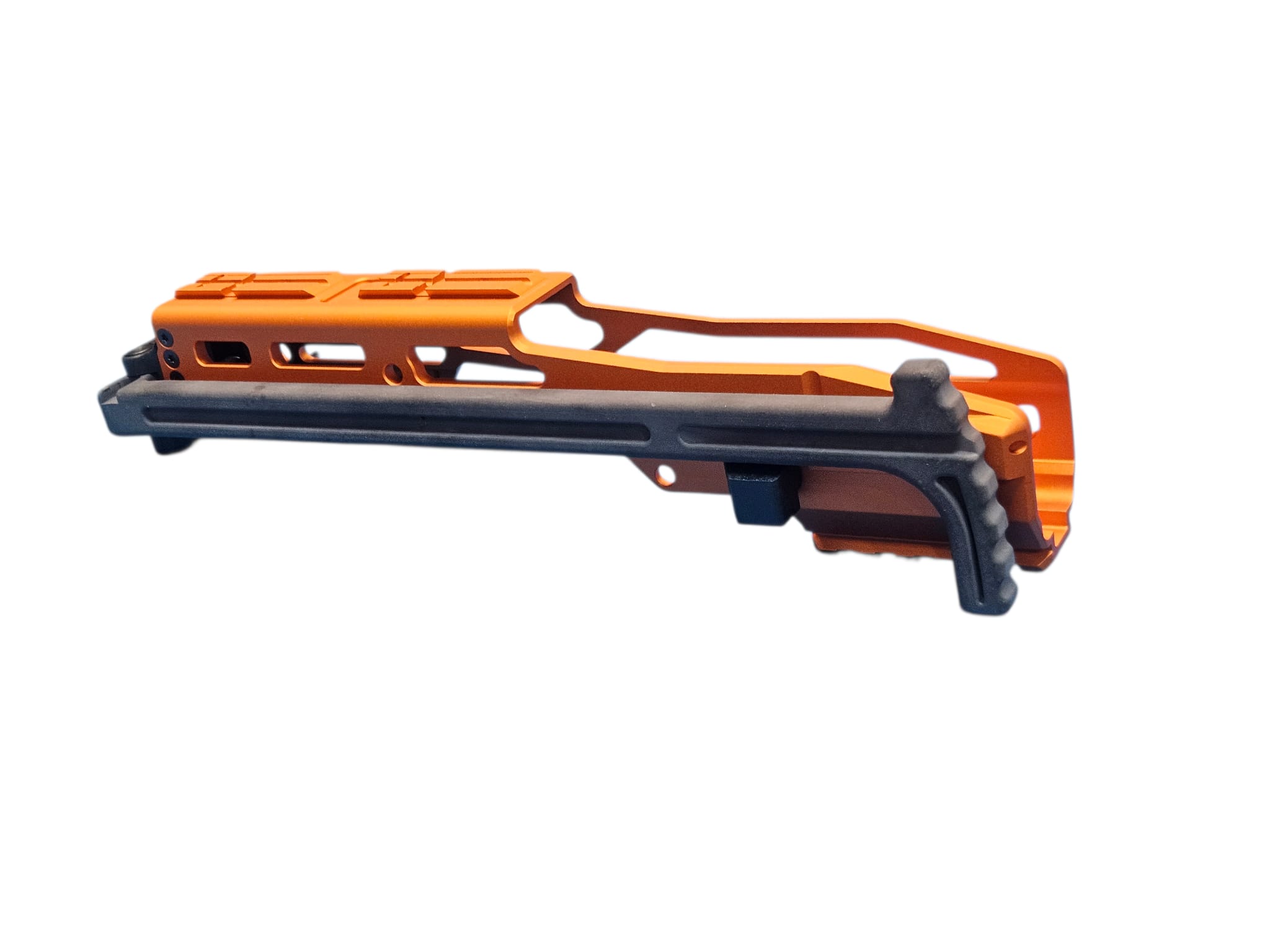System: Archwick HIGHER CAPA Pro Carbine Conversion PCC CNC Kit Orange designed to transform HI‑CAPA GBB pistols into a pistol‑caliber carbine platform. Constructed from durable CNC aluminum alloy with anodized orange finish for corrosion resistance and bold aesthetics. Features modular rail system for optics and accessories, ergonomic stock attachment, and reinforced frame for stability. Provides enhanced accuracy, recoil control, and tactical customization. Ideal for competitive shooters and airsoft enthusiasts seeking performance upgrades with distinctive styling.