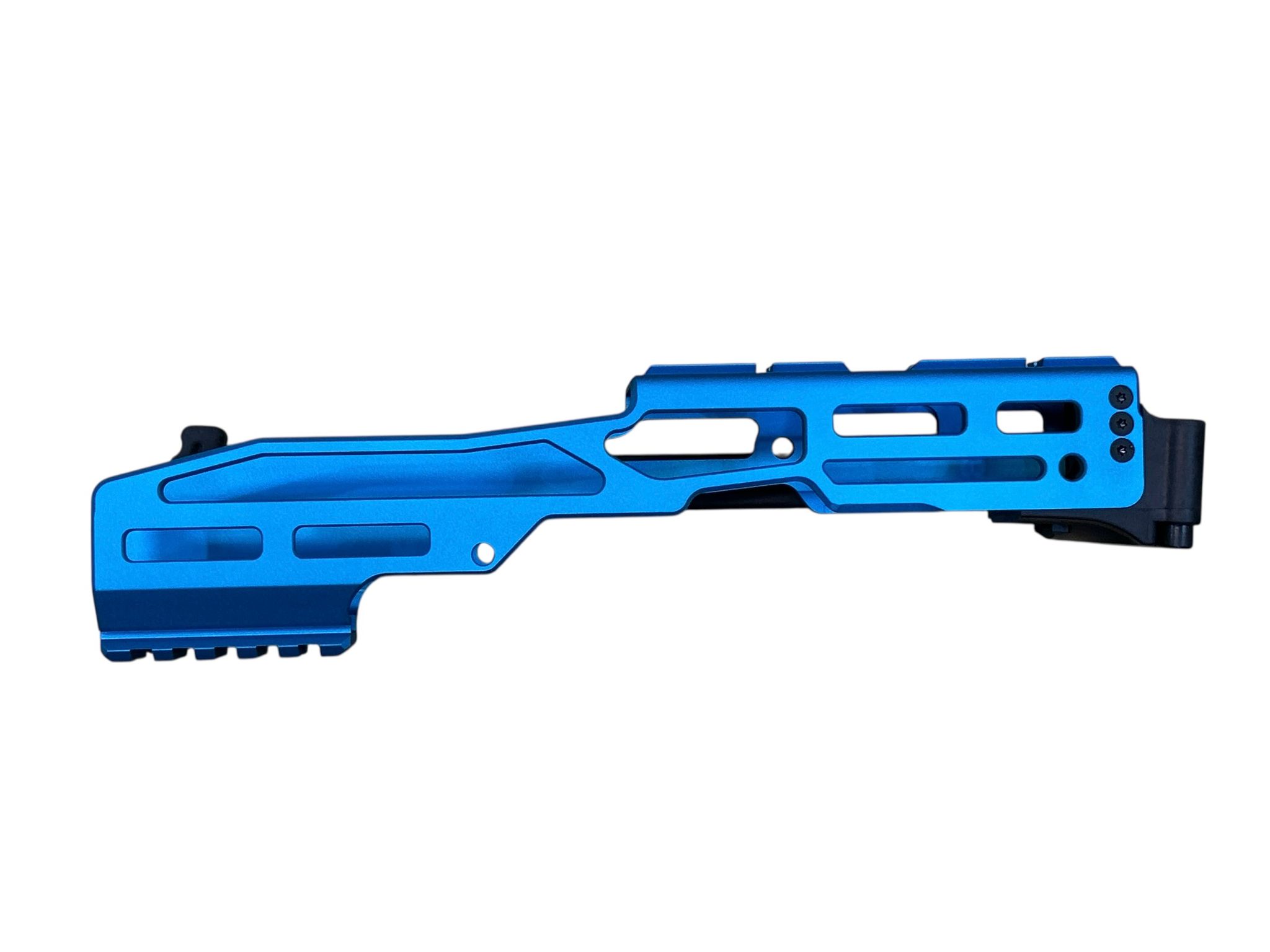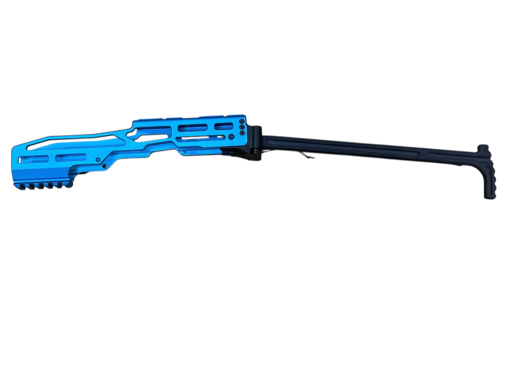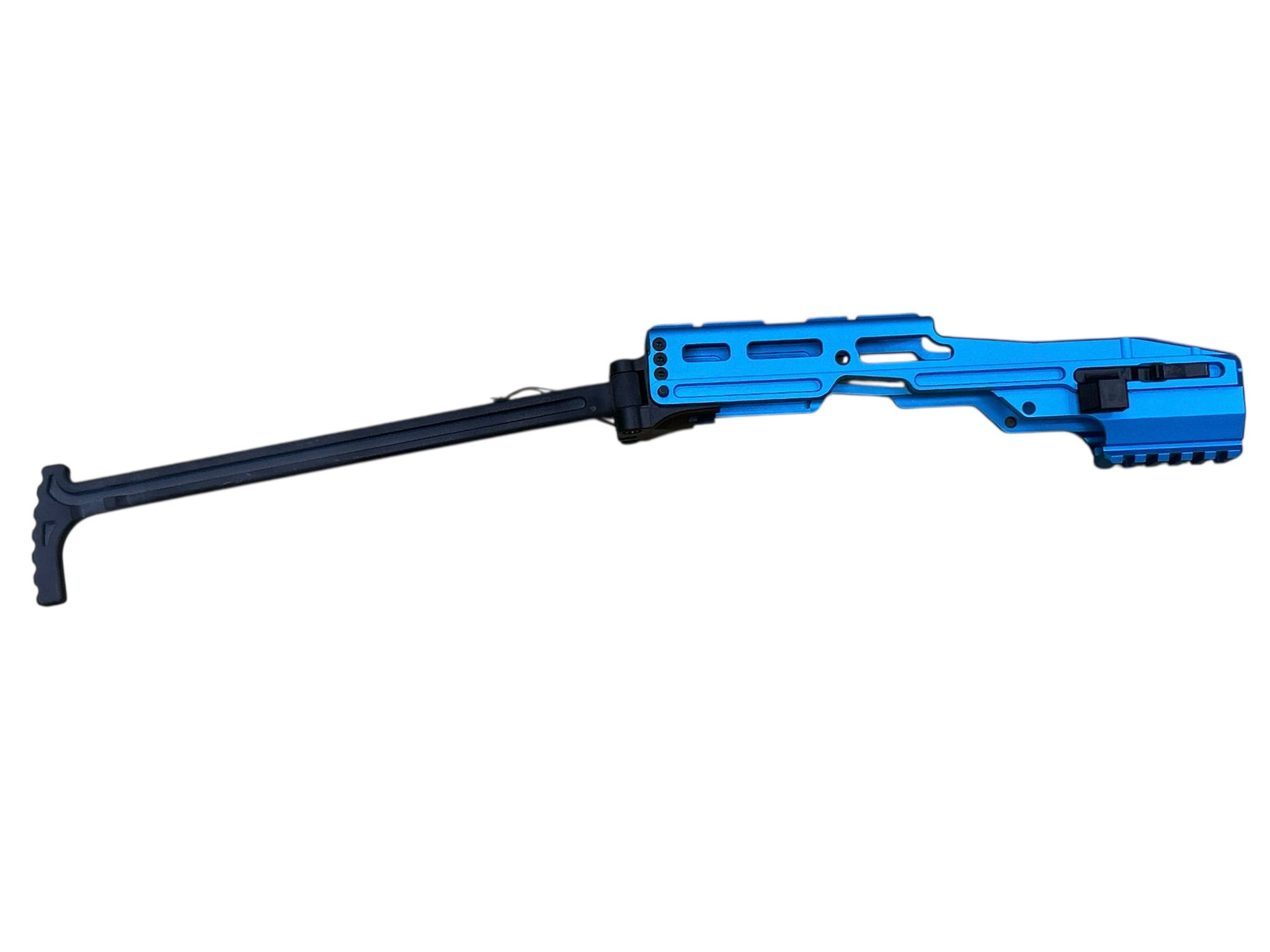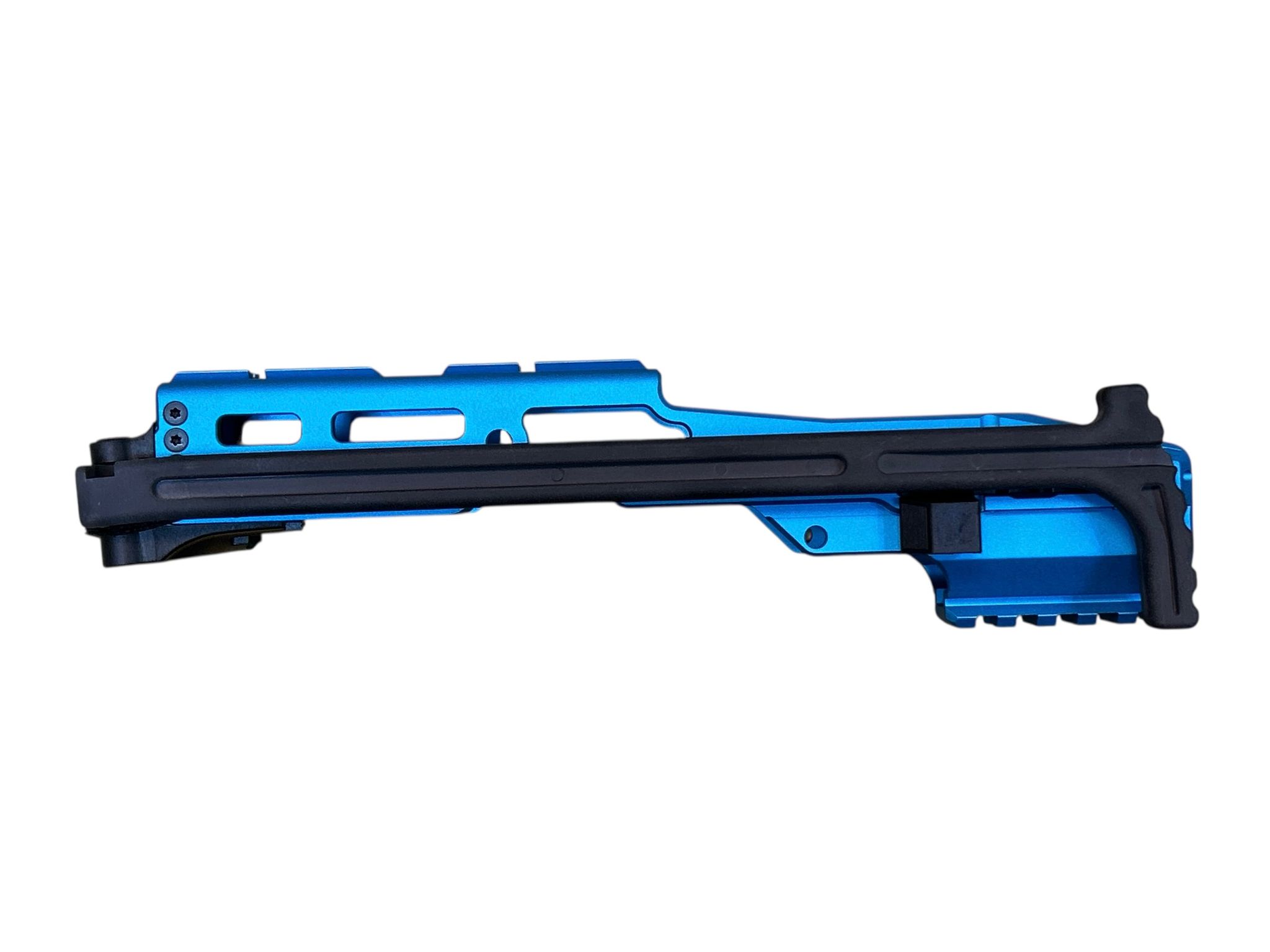 System: Archwick HIGHER CAPA Pro Carbine Conversion PCC CNC Kit Blue designed to transform HI‑CAPA GBB pistols into a pistol‑caliber carbine platform. Constructed from durable CNC aluminum alloy with anodized blue finish for corrosion resistance and striking aesthetics. Features modular rail system for optics and accessories, ergonomic stock attachment, and reinforced frame for stability. Provides enhanced accuracy, recoil control, and tactical customization. Ideal for competitive shooters and airsoft enthusiasts seeking performance upgrades with unique styling.
