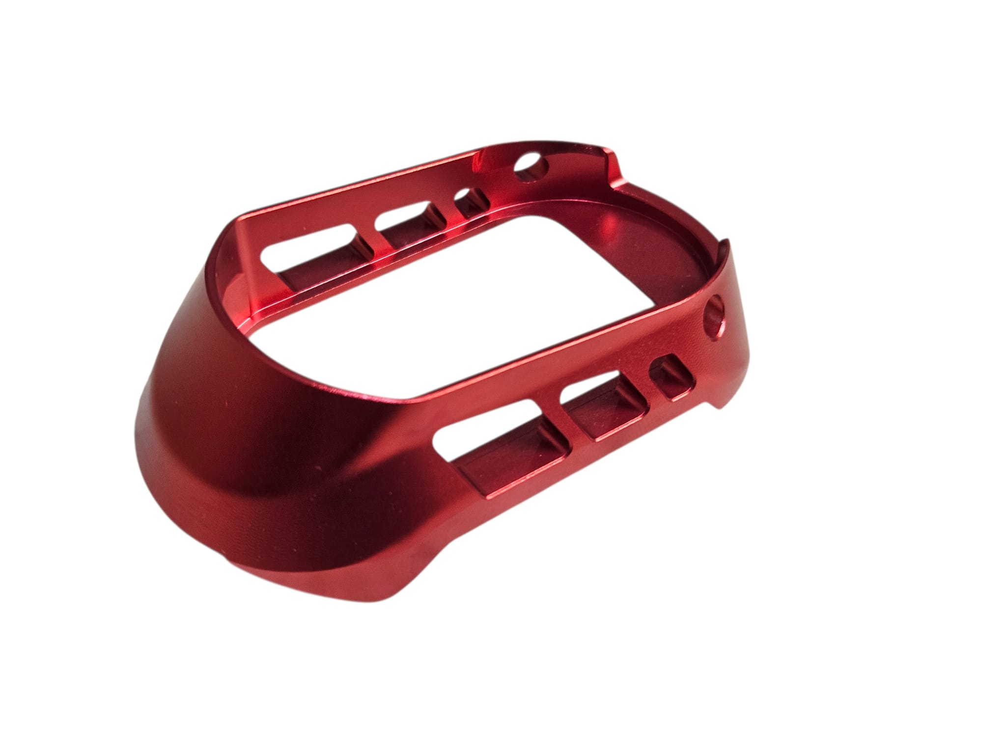 System: CTM CNC 7075 Extended Magwell RD designed for competitive shooting and IPSC race gun setups. Constructed from aerospace‑grade 7075 aluminum alloy for maximum strength and lightweight performance. Features flared opening to guide magazine insertion, improving reload speed and consistency. Anodized finish provides durability and sleek aesthetics. Ideal for competitive shooters and airsoft enthusiasts seeking faster reloads and enhanced ergonomics.